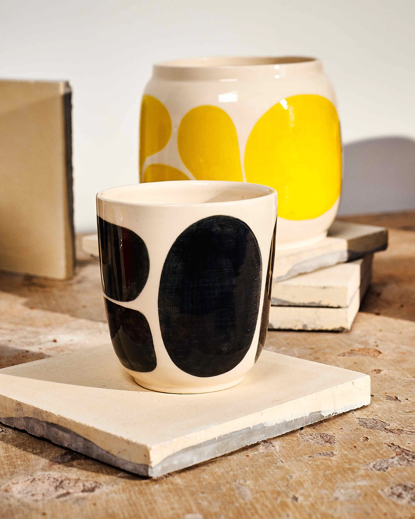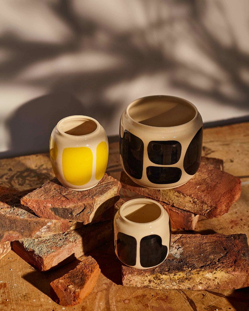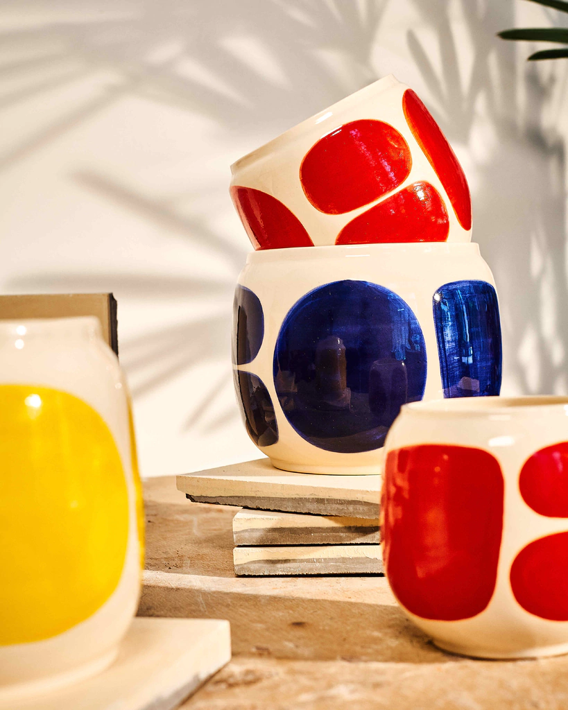 Maceta de cerámica hecha en torno alfarero pintada a mano y esmaltada en cristal. Cada una de ellas es una pieza única, comunicate con nosotros para elegir la tuya!